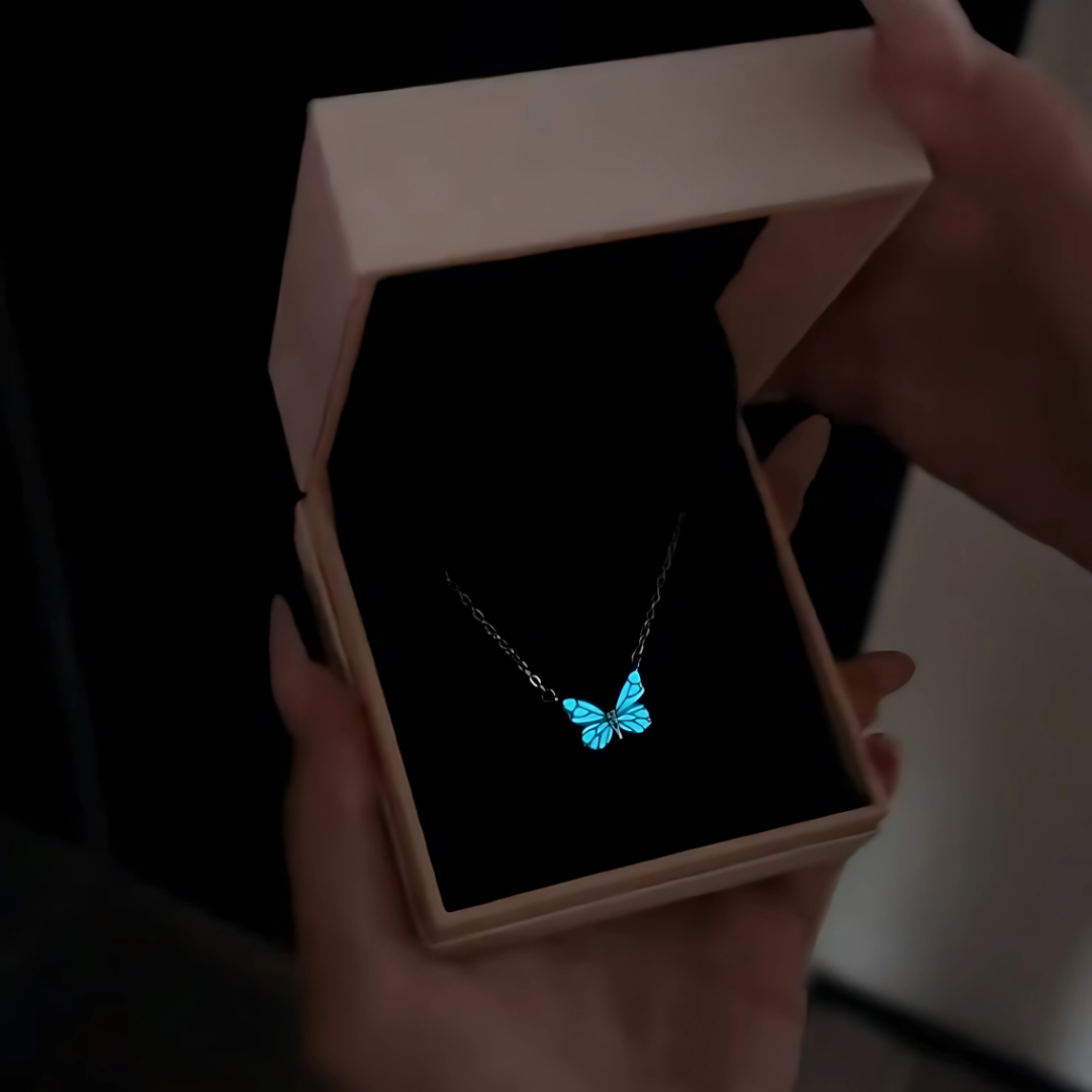 Der Schmetterlingsanhänger besteht aus einem speziellen phosphoreszierenden Material, das tagsüber oder unter hellen Bedingungen Licht absorbiert. In der Dunkelheit gibt er das gespeicherte Licht als sanftes Leuchten ab, was einen magischen Effekt erzeugt.